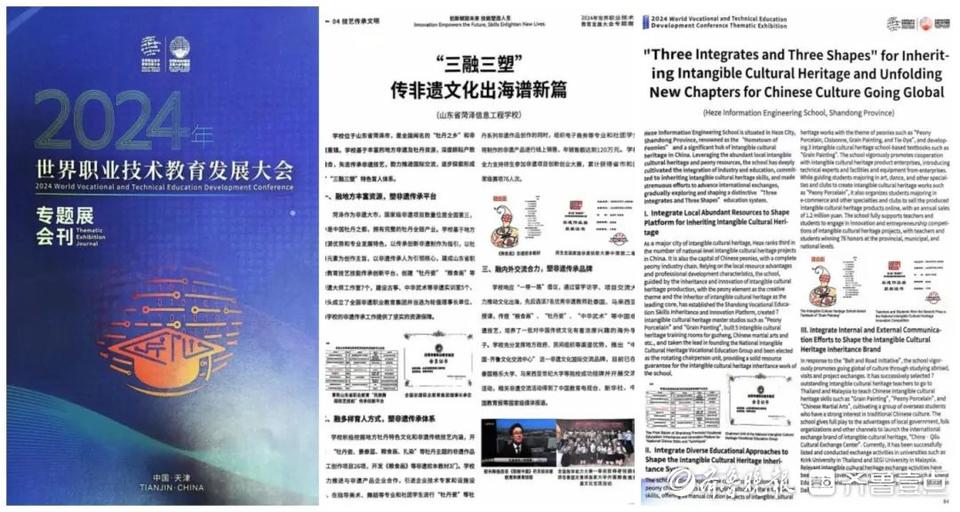 同期,为全面推介业绩阐述“中国样式”和“中国教化”,世界业绩时期阐述展实行委员会向大会嘉宾刊行了职教展独一泰斗性刊物--《会刊》,山东省菏泽信息工程学校典型案例《“三融三塑”传非遗、文化出海谱新篇》入选大会会刊,进一步展现了该校业绩阐述的丰硕办学后果。
