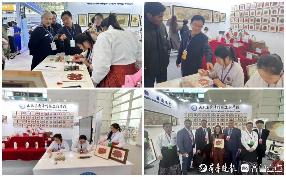 大会设专题展,山东省菏泽信息工程学校算作山东省独一入选中职学校亮相大会专题展,学校展厅以“牡丹之韵,非遗瑰宝”为主题,分为食粮画、景泰蓝、扎染、泥塑、现场展示五大模块,刺目展示了以菏泽牡丹元素为创作东旨、以菏泽非遗制作工艺时期为创作妙技的学校师生系列牡丹非遗作品,内涵丰富,作念工精良,多模样、多角度、全标的聚集呈现了学校产教和会、阐述教养和社会工作等方面的举措和见效,诱导了稠密中外参会嘉宾的祥和与体验,向世界展示了中国非物资文化遗产的独到魔力和文化价值。